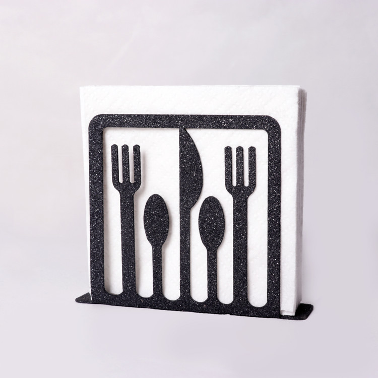 جادستمال فلزی طرح قاشق چنگال 2 رنگ مشکی اکلیلی